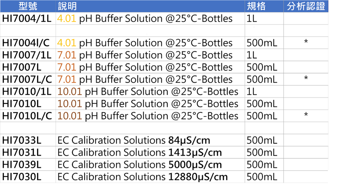 HI7004L/C 是一款高品質 pH 4.01 校準緩衝液,可追溯至 NIST 標準並附分析證書。產品採用密封防篡改設計,瓶身標示批號與有效日期,並印有不同溫度下實際 pH 值的溫度對照表。